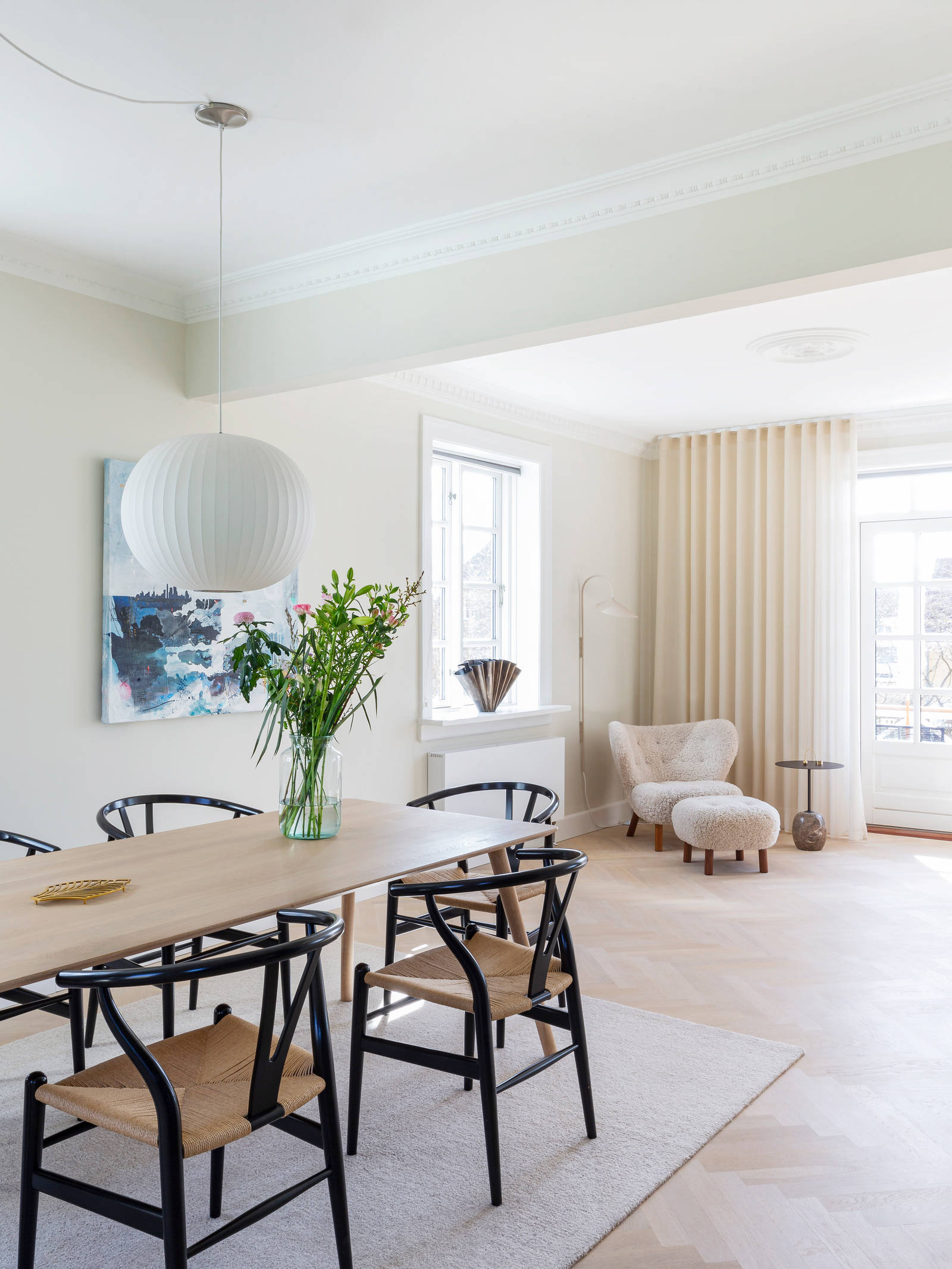 Julie og Peter kunne derfor koncentrere sig om at forvandle de små rum på stueetagen til et funktionelt og moderne hjem med plads til familiehygge, børnefødselsdage og juleaftener med mere end 20 gæster rundt om spisebordet.