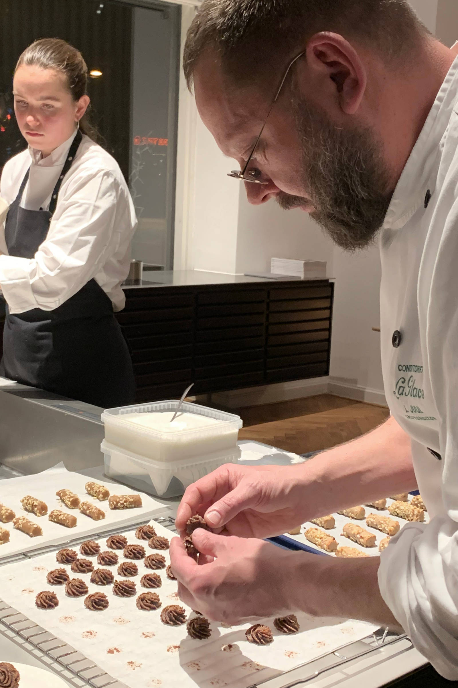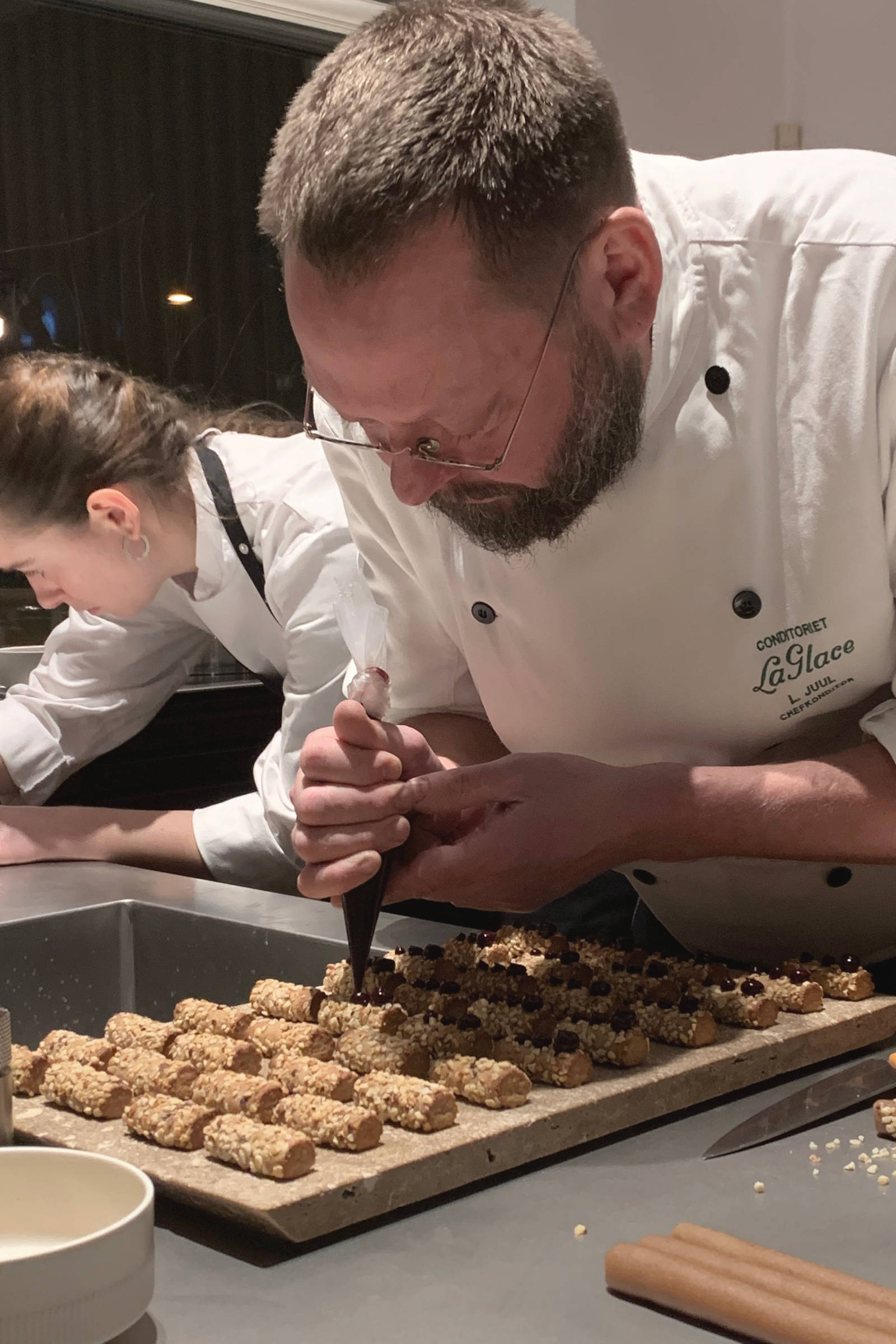 I samarbejde med BO BEDRE inviterede vi 1. december 2022 indenfor i uno forms flagshipstore på Søtorvet i København til en aften med snedkerkøkkener, konfektmarcipan og chefkonditorens egne opskrifter. Lars Juul er udlært både bager og konditor. Han kom til La Glace i 1996 og har siden 2003 haft titlen af chefkonditor på det traditionsrige konditori i hjertet af København.