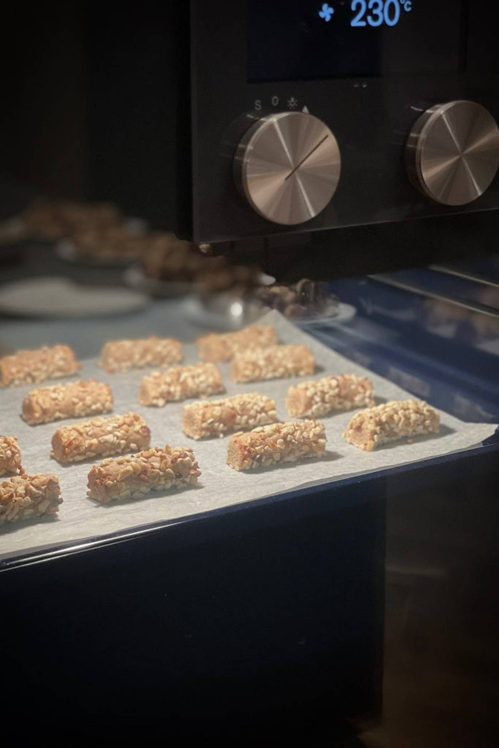 - Konfekten bages på 220 grader med 3-dobbelt plade i ca. 4-5 minutter